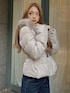 ダウンジャケットとパンツのブーツインで防寒対策もバッチリのコーディネート! デニムパンツを使ったスタイルはカジュアルになりがちですが、ダウンのカラーをベージュにすれば少しキレイ目な印象に。 統一感が出るようにニット・BAG・ブーツはブラックで統一しました♪