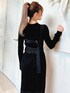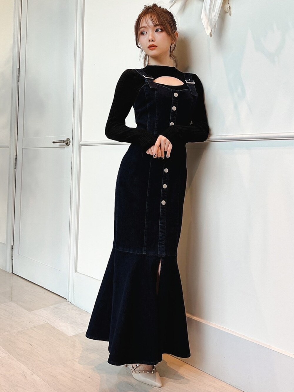 肌見せが少な目なロング丈に、あえてバスト切り替えデザインのトップスを合わせてちょうど良い肌魅せコーディネートに♪ バックスタイルのデザインもポイントなので、アップヘアーですっきりとまとめるのがおすすめです!