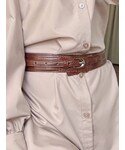 Aラインのシャツワンピースにベルトをオンしてメリハリのあるスタイリングに♪ ピンクにはブラウンの小物を合わせると甘くなりすぎず着こなせます!