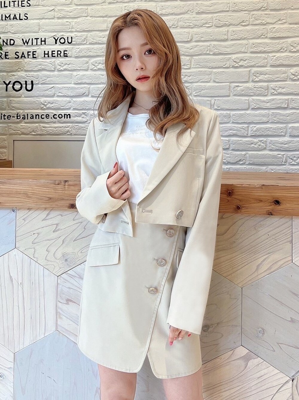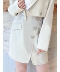 この春大注目の、ショートジャケット×スカートのセットアップ! 着るだけで一気に今年顔に♪インナーにロゴTを合わせてかっちりしすぎないようにまとめました♪