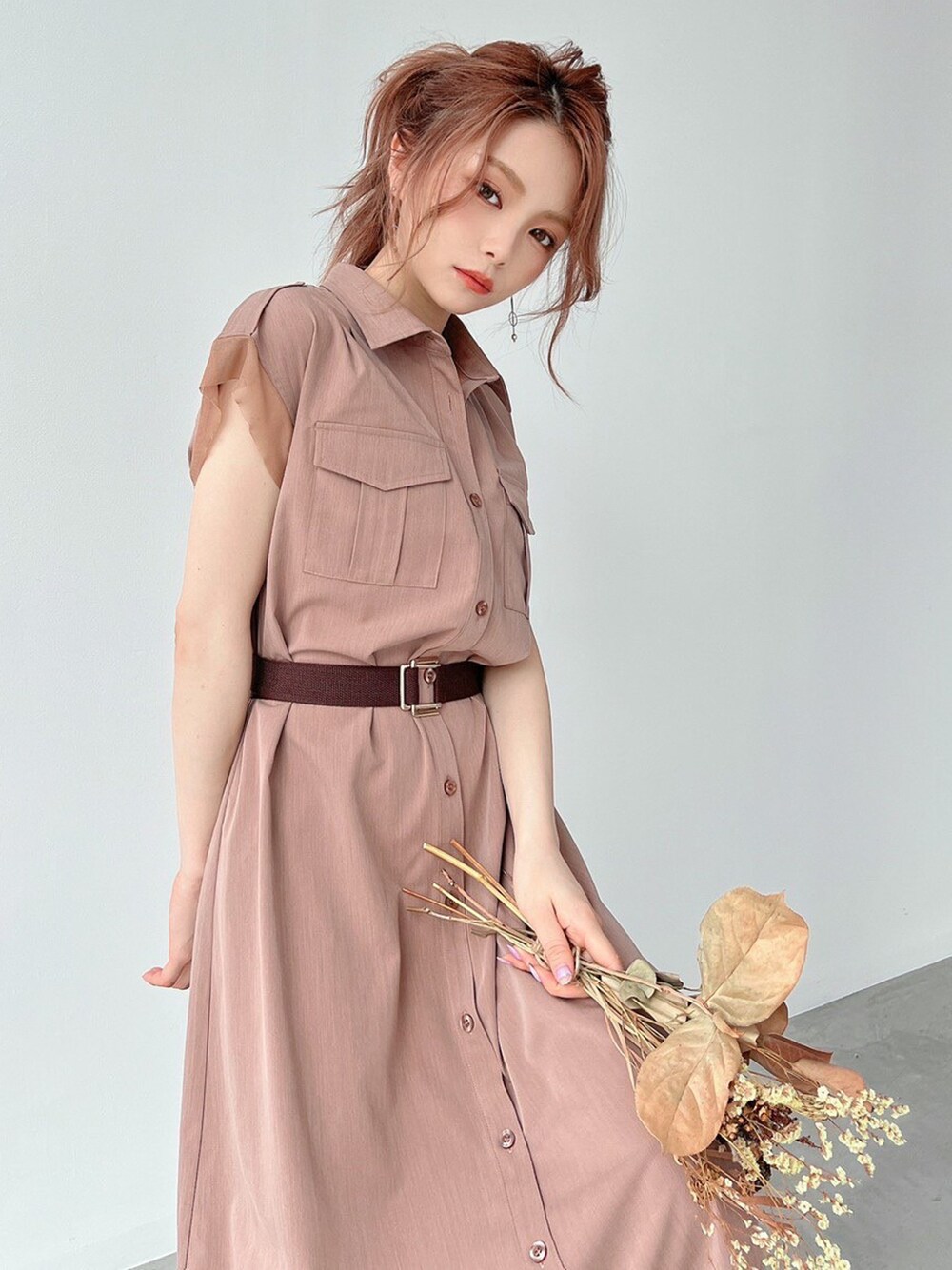 コーデに迷ったときはコレ! ベルトもセットになっているので、1枚でコーデが完成します♪ 同系色のシューズでワントーンにそろえると、さらにワンランク上に!