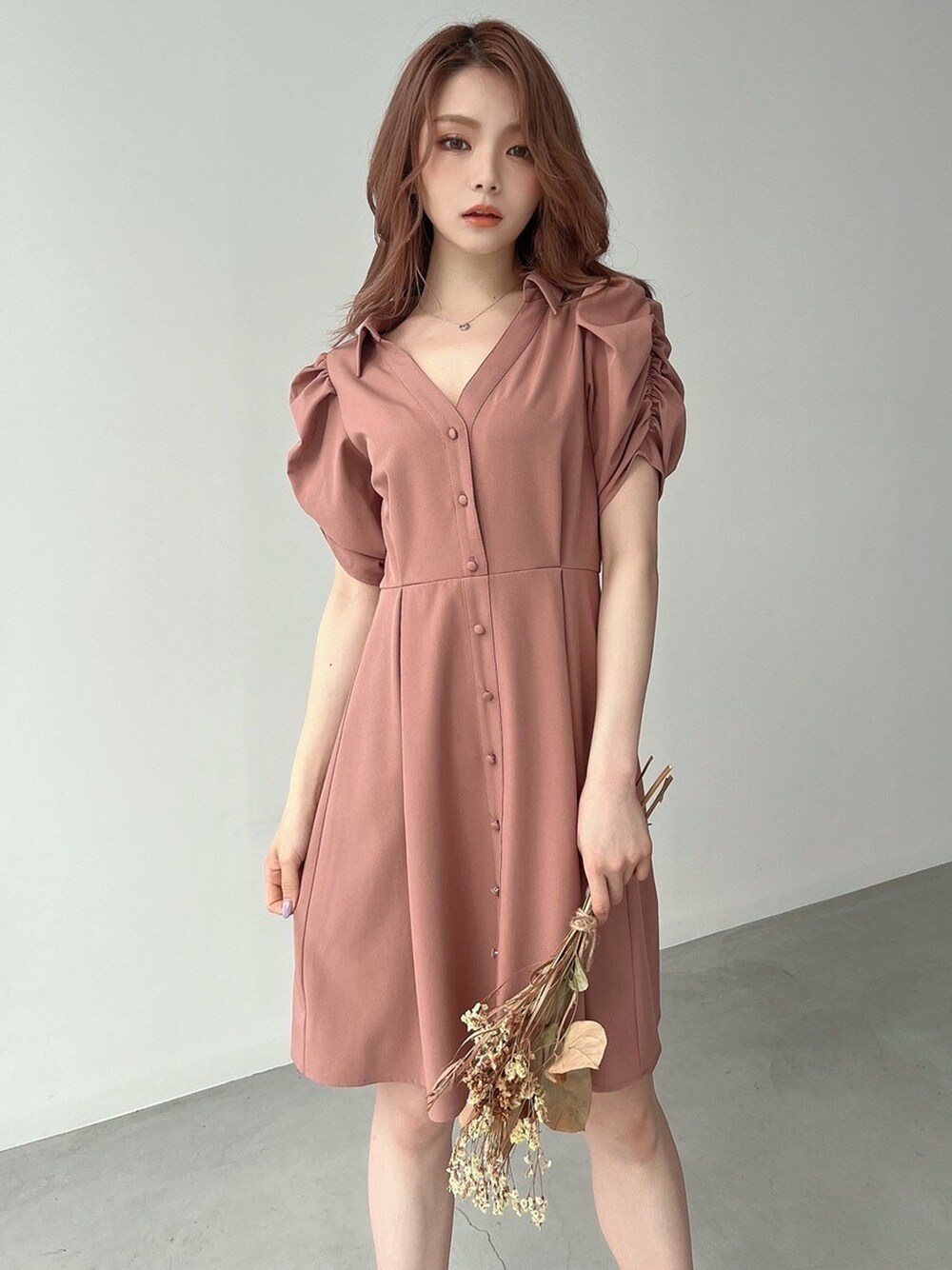 シャツワンピをさらっと1枚で着たい気分の日は、カラーと細かいデザインがポイントのドレープミニシャツワンピースで決まり! ボリュームのあるショルダーのデザインは気になる二の腕の細見え効果も。