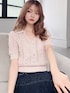 シンプルだけと存在感のあるニットポロ。ショート丈なのでハイウエストボトムと合わせてスタイルアップ♪ インナーはベアで合わせて、少し肌が見えるようにしました♪