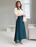 秋らしいカラーのスカートがコーデの主役!グリーンカラーはプラスするだけで一気にトレンド感が増しておすすめ。 他ITEMはアイボリー系でとことんシンプルにまとめました♪