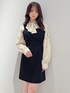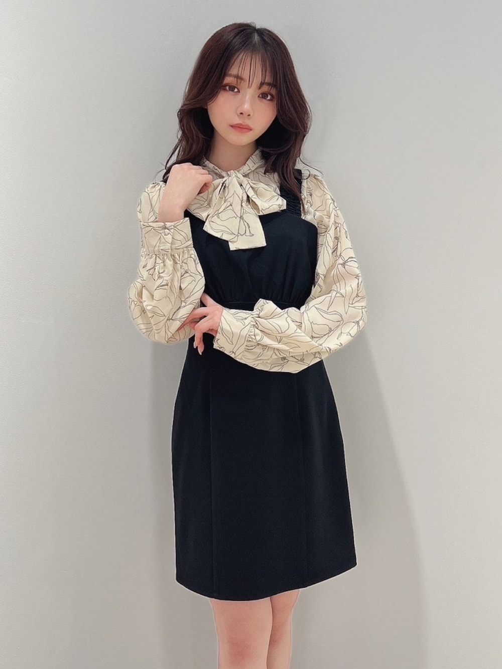 もともとシャツがセットになっているワンピースに、気分を変えて違うブラウスをレイヤード✨ 花柄×ジャンスカは甘くなりがちなので、ブラックで締めるのがおすすめです♪