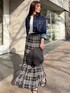 フェミニンなイメージのチェック柄に、デニムジャケットを合わせて少しカジュアルに✨️ 小柄な方がロングスカートを着る時は、合わせるトップスをショート丈にするとバランス◎!