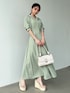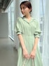 夏らしい爽やかなグリーンのワンピースがコーディネートの主役💚 小物はアイボリー系で合わせてすっきりと! フワッとした動きのある袖とスカートが、シンプルな中に華やかさをプラスしてくれます。 ヘアはまとめてすっきりさせるとバランス◎!