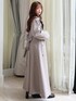 骨格ストレートさんが大得意なキレイめシルエットアウター✨ インナーのVネックトップスでデコルテはすっきりと。 スカートのチェック柄×スリットも骨ストが盛れるアイテム!