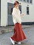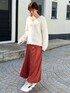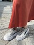 ラフな気分の時はスニーカーコーデ👟 ざっくり開いたVネックと、スカートの光沢感が程よく女性らしさをプラスしてくれるので、 普段はキレイめな方でも挑戦しやすいコーディネートです✨ 少し厚底のデザインなので、小柄な方にもおすすめしたいスニーカーです!