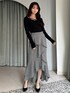 デザイン感たっぷりのスカートがコーデの主役! だけとトップスもラインデザインでしっかりトレンドは取り入れました✨ モノトーンで挑戦しやすいけど、シンプルになりすぎなくておすすめです☝️
