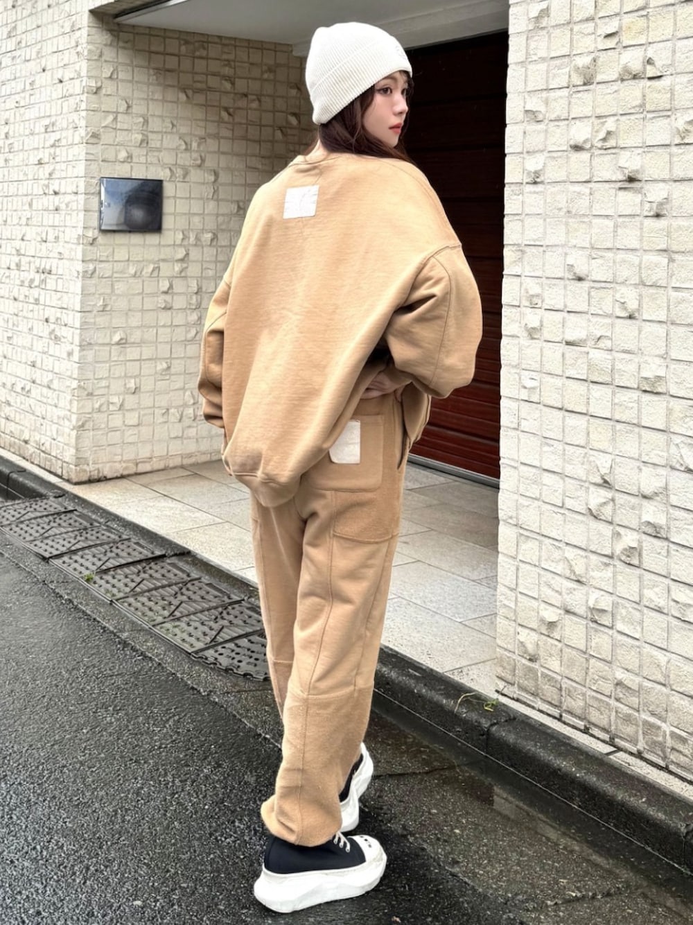 トップスはシンプルなスウェット、 パンツはパッチワークデザインのスウェットでメリハリをつけました🎶 シンプルでラフなスタイルなので、ニット帽など小物をプラスするのがオススメです!✨️
