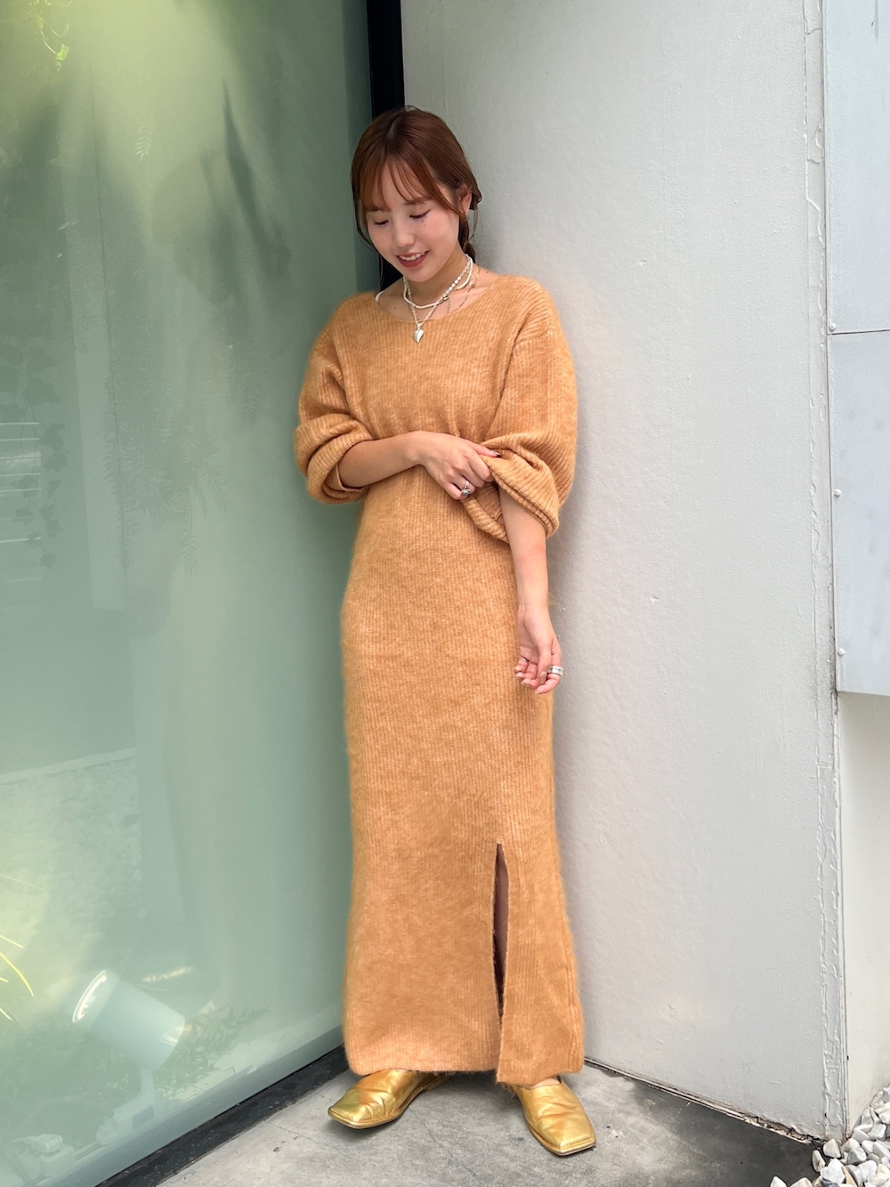 鈴木未唯(Ungrid)のワンピース「2Wayスリットニットワンピ-ス」を使ったコーディネート