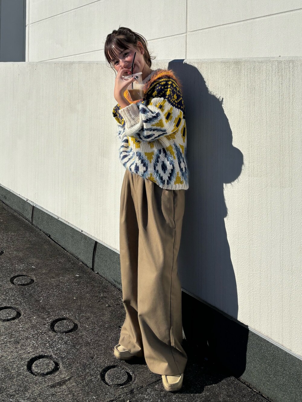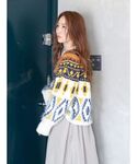 鈴木未唯(Ungrid)のニット/セーター「フェザーヤーンコンビ求心柄ニット」を使ったコーディネート