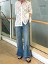 【シャツ】 腰まで隠してくれるサイズ感👔 スケすぎてないので着やすい!! キャミワンピースの上に羽織っても可愛いです♥️ 【デニム】 身長154cmで24インチ着用! フラットサンダルだと少し地面についてしまうので3センチのヒールがオススメです! 生地感も柔らかいので履きやすい🙈