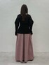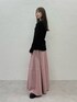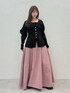 全体的にボリューミーなシルエットが魅力のコーディネート。 トップスはブラックだけど、スカートのピンクカラーが柔らかさをプラス。 アクセントにもなり華やかさが◎