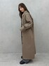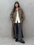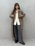 上品なロングコートが主役なコーデ🧥 ハリ感がありつつも光沢もあり 高見えする一枚。 中はトレンドライクなシャギーカーデを合わせて表情を。