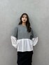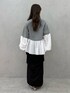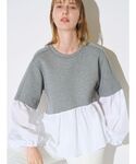 スウェットとシャツ素材の ドッキングトップス ペプラムデザインが女性らしくて可愛いっ タイトなスカート合わせは スタイルアップが叶います♡