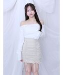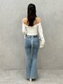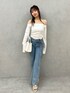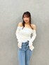 フレアデニムになってるのでスタイルが良く見えます🙆♀️ トップスはオフショルダーで、滑り止めがついてるので上がることも下がることも防げるのが嬉しい♪