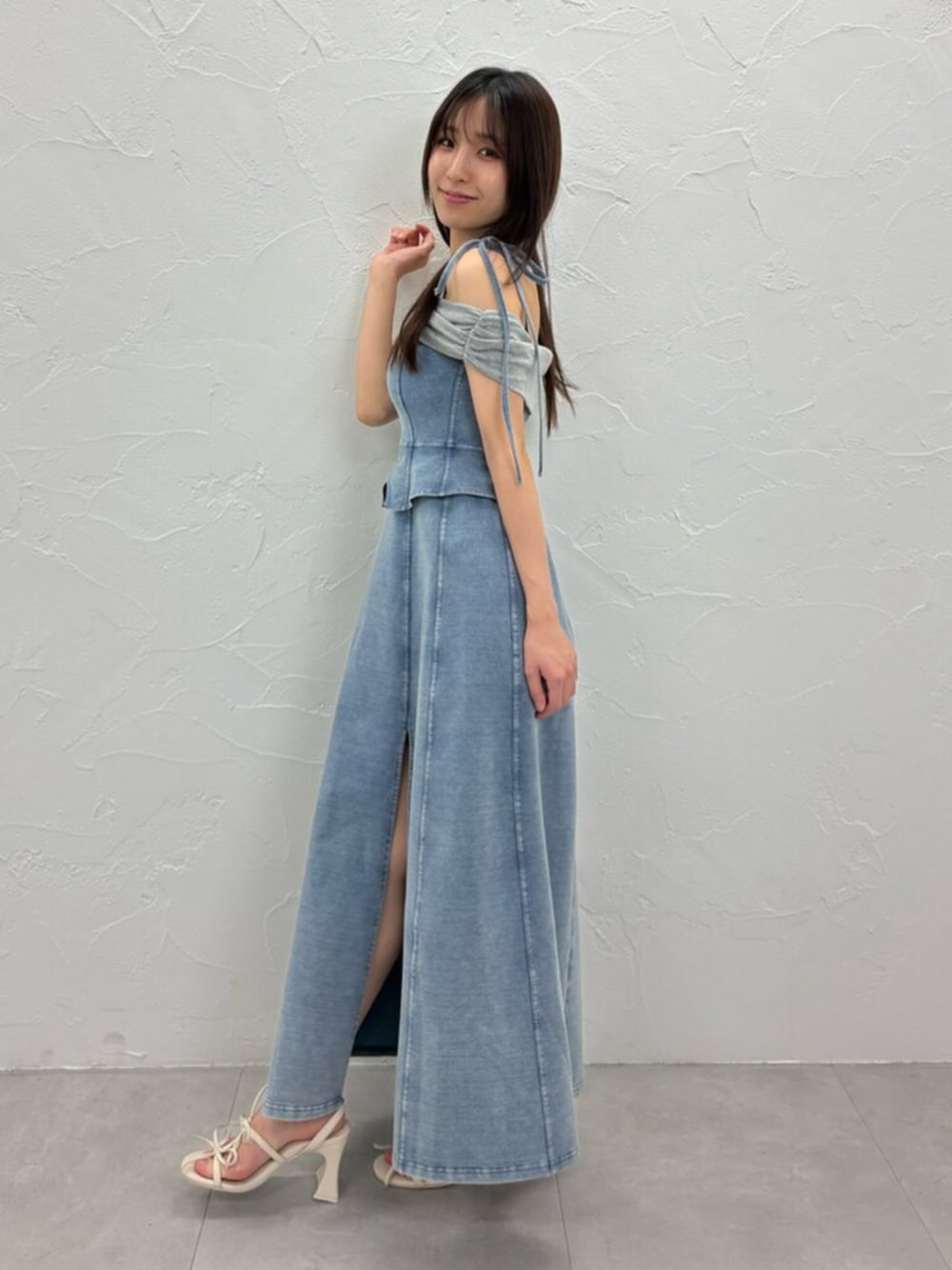 とても上品でまるでお嬢様みたいな可愛いワンピースです👗✨ スカートには大きくスリットも入っていてかわいいです! サンダルもリボンがたくさんついていてアクセントになります🎀
