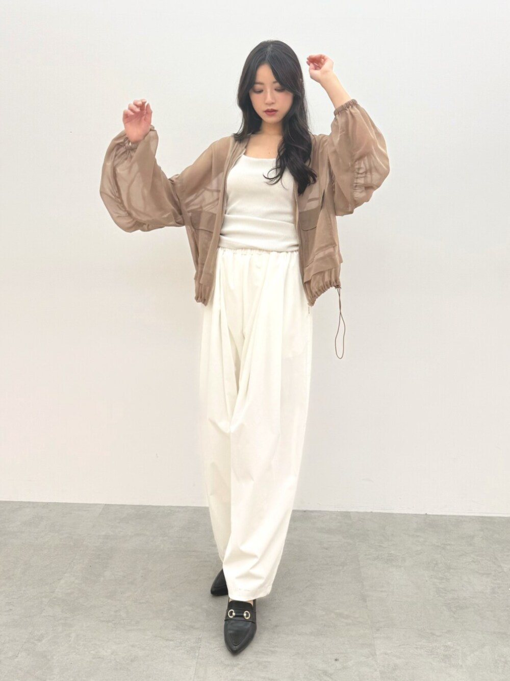 1枚持っておくと安心のシースルーのブルゾン🤎ゆったりとしたパンツもお気に入り🤍春にピッタリです🌸