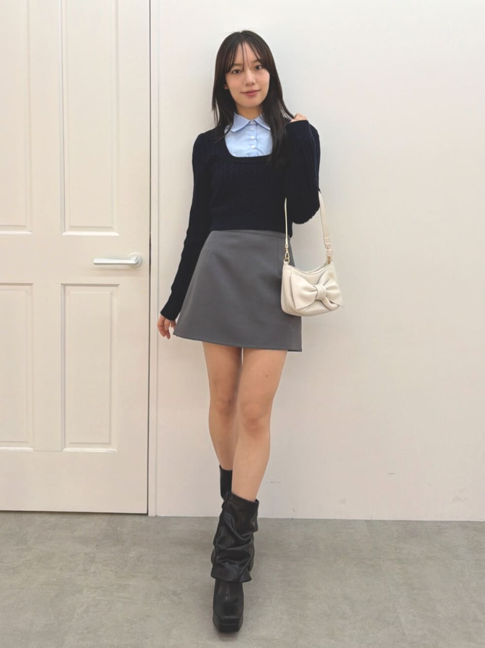 FUMI(RUNWAY channel SELECTION)のニット/セーター「シャツドッキングケーブルニットトップス」を使ったコーディネート