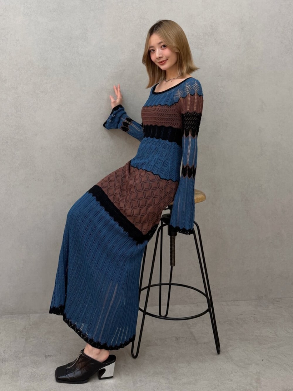 MIZUKI(RUNWAY channel SELECTION)のワンピース「バイカラークロシェニットワンピース」を使ったコーディネート