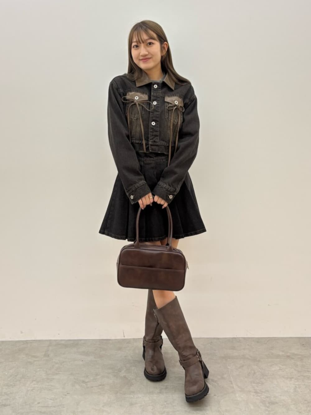 可愛すぎるデニムのセットアップ💞 秋を感じさせるブラウンのバッグとブーツと合わせてみました🍂