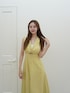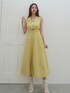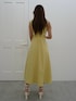 柔らかいレモンイエローが爽やかで、夏らしさを演出。 素材感も軽やかで通気性の良さそうな生地は、暑い季節に適した選択。 ノースリーブのベスト風トップとウエストのカットアウトが特徴的で、トレンド感と抜け感を両立。 ウエストが絞られたAラインで、女性らしい上品なシルエット。🤍 レースアップのヒールサンダルが、リゾート感とフェミニンさをプラス。🌻 全体的に、上品でリラックス感もあり、リゾート地や夏のお出かけにぴったりなコーディネートになっています。