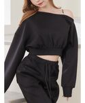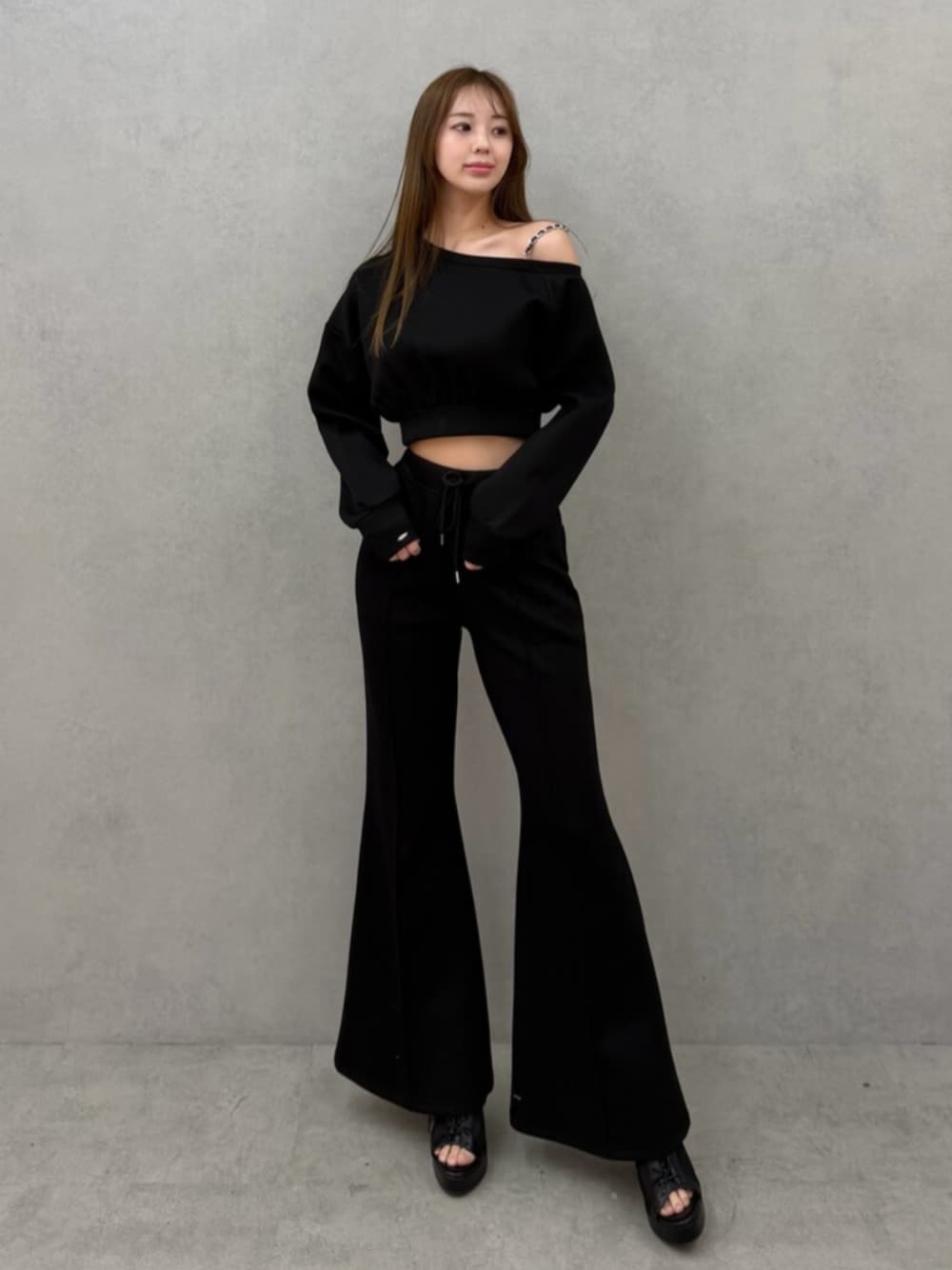 頑張りすぎない日のブラックコーデ🖤 ラフさと女性らしさのバランスがちょうどいい感じ。 シンプルだからこそ、シルエットと肌見せで差をつけたのがポイント✨