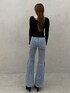 シンプルだけどシルエット重視。 カットデザインのトップスでちょい攻め、デニムはフレアで脚長効果◎ オールブラックになりすぎないようにデニムで抜け感プラス。