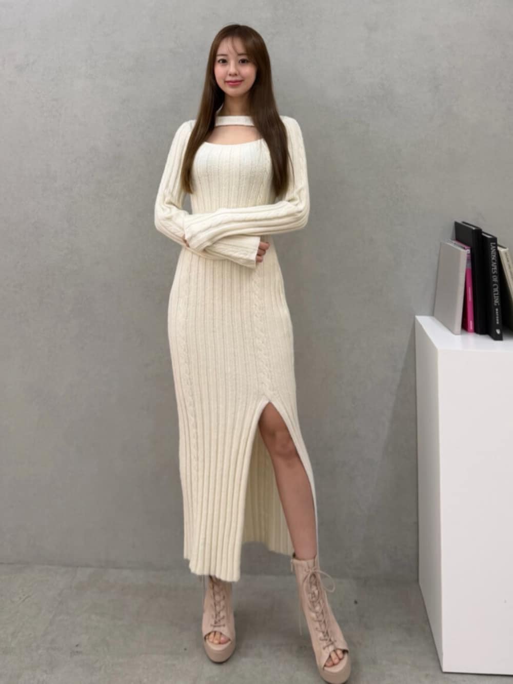 SHINRI(RUNWAY channel SELECTION)のワンピース「デコルテニットワンピース」を使ったコーディネート