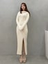 ニットワンピで大人コーデ 体のラインを拾いすぎないのに、 ちゃんと女性らしく見えるニットワンピ。 縦ラインとスリットでスタイルアップを意識。 淡色コーデは小物とシルエットでメリハリつけるのが好き。 デートにもお出かけにも使える一枚。🤍