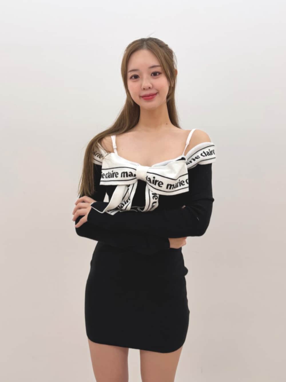 コラボワンピ🖤🤍 中央のリボンがアクセントでミニ丈がめちゃ可愛いです(^ν^)