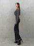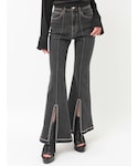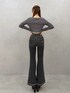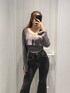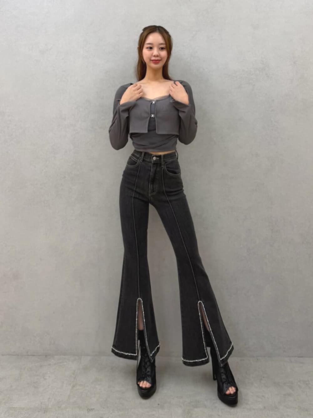 コンパクトなトップスでウエストラインをきれいに見せてスタイルアップ👗 ・フレアデニムで脚長効果をプラス👖✨ ・裾のスリットデザインが動くたびに抜け感を出してくれるのがポイント💫 ・全体をグレー×ブラックでまとめて大人っぽいモードな雰囲気に🖤 シンプルだけど、シルエットとデザインでしっかり存在感のあるコーデです🌙
