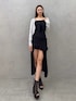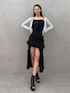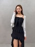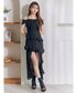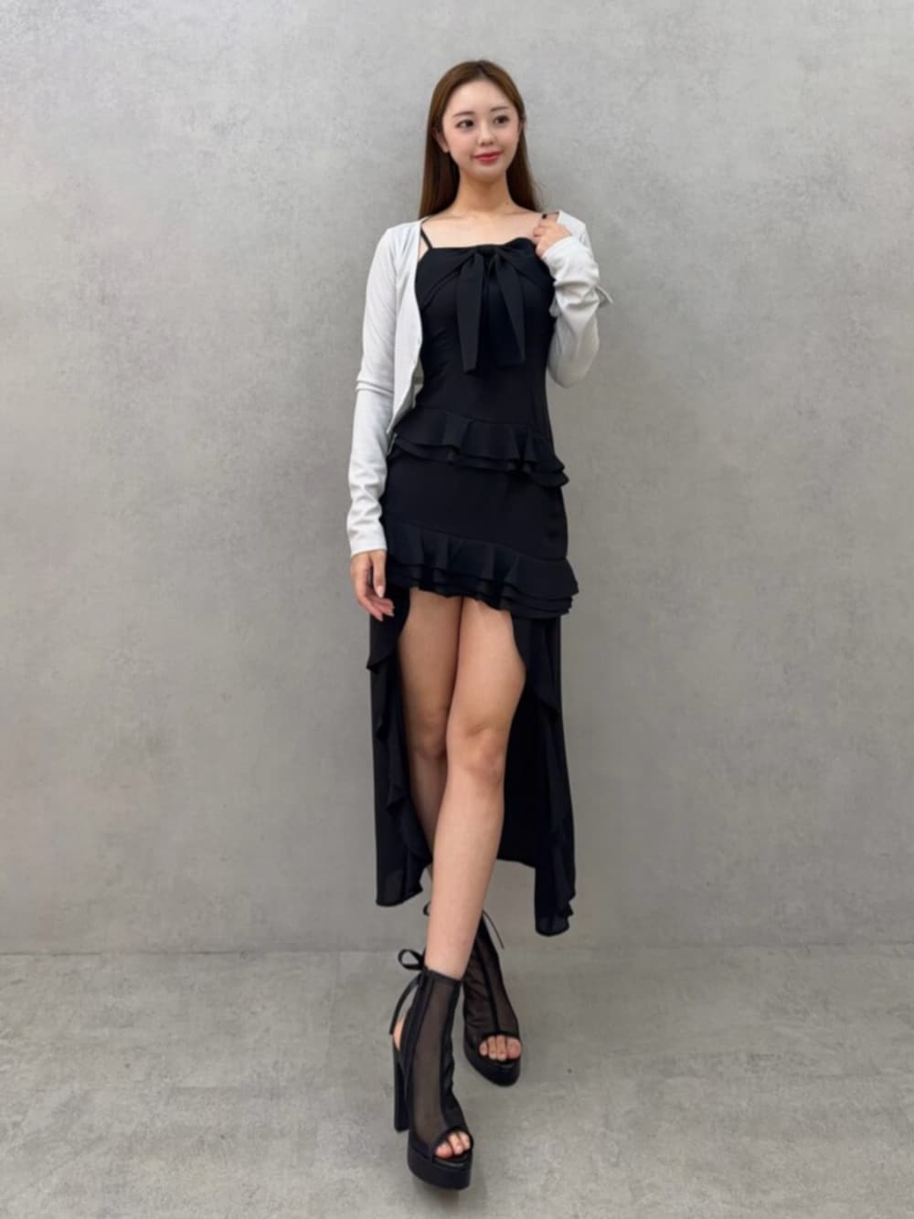 ブラックワンピで大人っぽく🤍 フリルとアシンメトリーな丈感で 女性らしさを出しつつ、 シルエットはすっきり綺麗に。 軽めの羽織りで抜け感もプラス◎