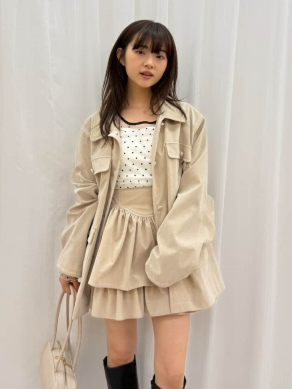 ガーリーなセットアップコーデ☺︎ 黒のロングブーツを合わせて、甘すぎない印象にしました!