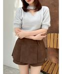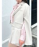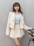 ジャケットとスカートに同系色のロングブーツを合わせることで、脚長効果を期待できます。