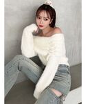 オフショルのホワイトニットにデニムを合わせた甘くなりすぎないカジュアルコーデ♡