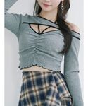 肌見せ✖️ロングスカートコーデ ♡ロング丈で秋感を取り入れました ♡肌見せトップスで抜け感を演出 ♡ブルーチェックの差し色効果で暗くなりすぎない印象に◎