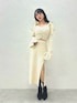 ♡ クリームトーンが肌をふわっと明るく見せてくれるニットアップです✩︎⡱ 淡い色味でも浮きにくく、冬コーデにすっと馴染むのが嬉しいポイント◎ ♡ トップスは胸元のシャーリングがアクセントになっていて、デコルテがきれいに見えるデザインです! 肩のリボンもさりげなく可愛くて、甘さのバランスがちょうど良いので大人の方にも取り入れていただきやすいです。 ♡ 袖は長めで手元に落ちるシルエットがとても女性らしく、動くたびに柔らかさが伝わるアイテムです。写真映えもするので、デートや撮影にも◎ ♡ スカートはストレートラインで縦のシルエットが綺麗に出るのが魅力です✩︎⡱ 深めのスリットが入っているので重くなりすぎず、歩いたときの抜け感がとても可愛いです。 ♡ 足元はブラックのブーツで引き締めると、淡色コーデ全体にメリハリが出てバランスよくまとまります! ____________ 冬の“柔らかいムード”を作りたい日にぴったりのセットアップで、 デートやちょっと特別なお出かけにもとてもおすすめです♡