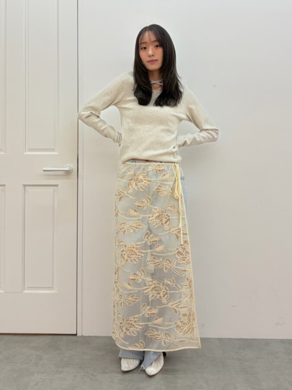 レイヤード大人コーデ♡ メッシュスカートのレイヤードがポイントの大人コーデ🌾 デニムにレイヤードすることでグッとお洒落な印象に♡