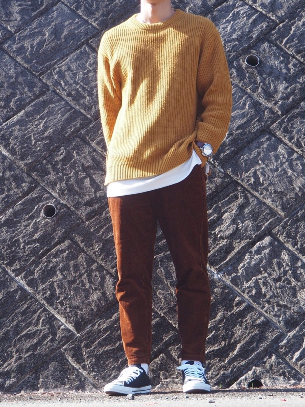 今回はコーデュロイパンツを使ったコーデ!! 秋らしいカラーでまとめてみました🍁 あとレイヤードに白を入れてみたらいい感じに😋 今日の気温にはちょーどいいコーデ👍