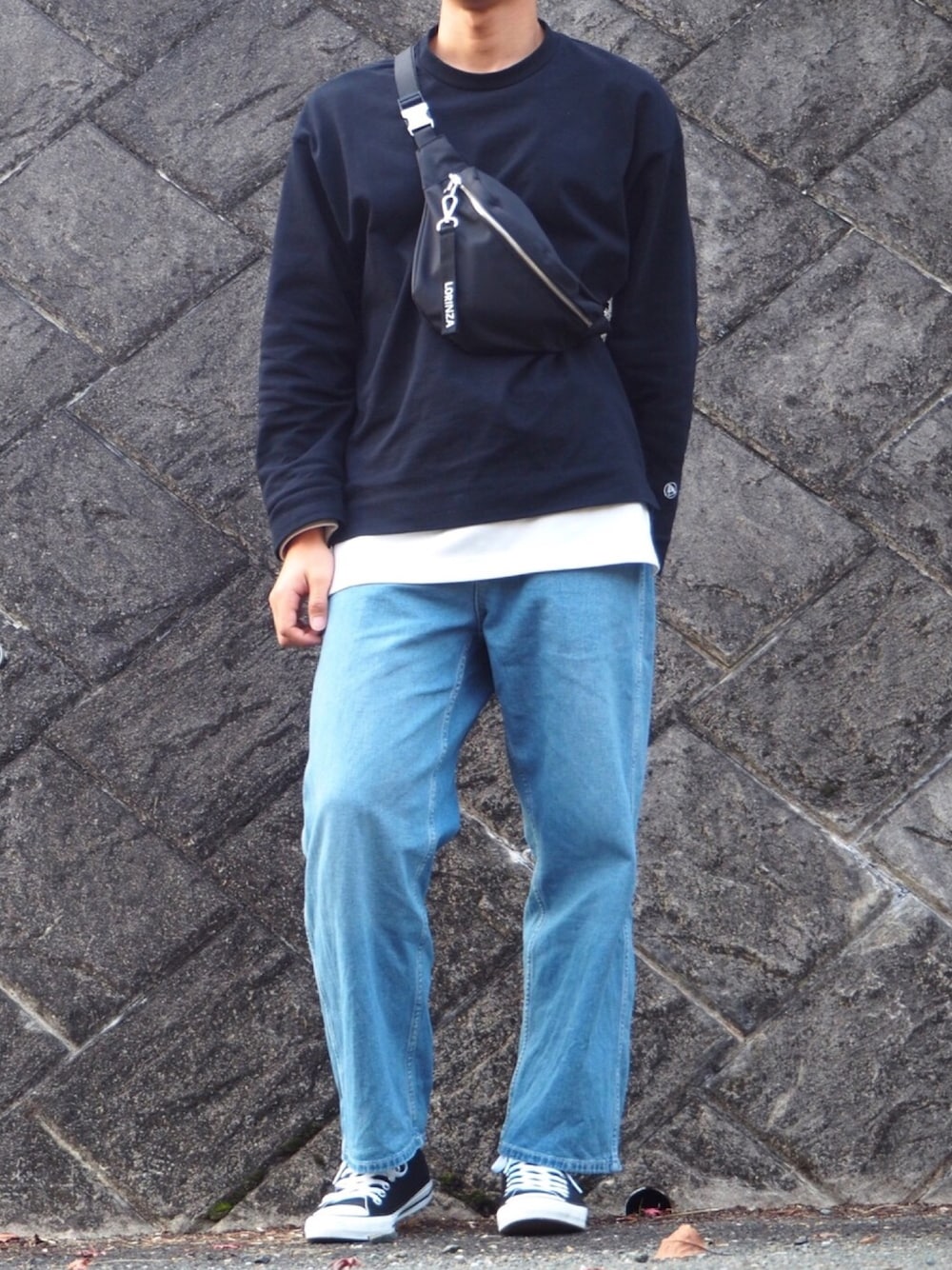 今回はゆったりとカジュアルコーデ!! 青×黒×白の組み合わせ!! 最近暖かいですね🌞