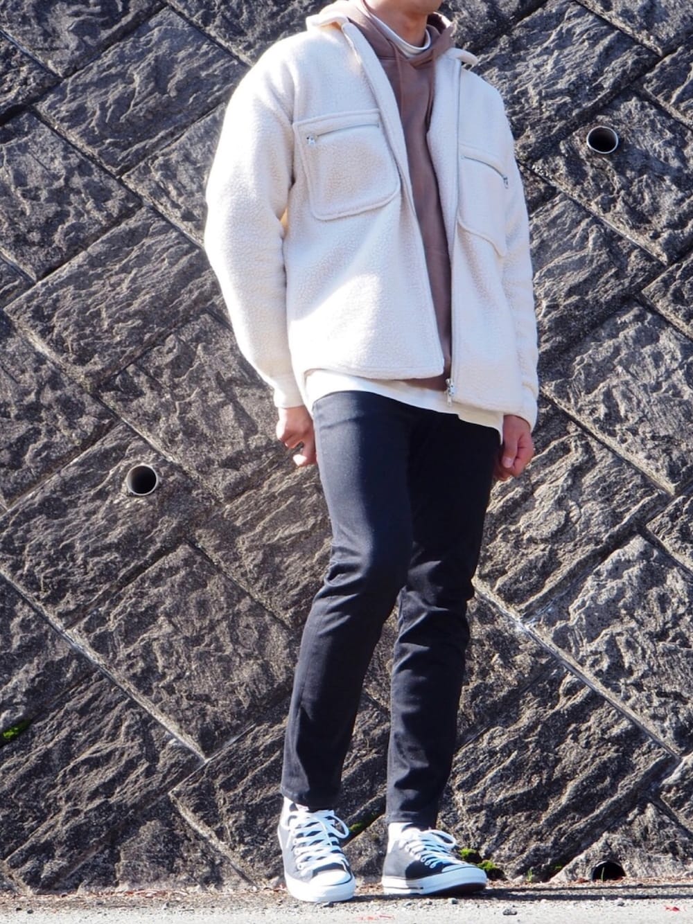 今回はボアジャケットコーデ!! パーカーとの組み合わせが一番相性良い👍 今年一番着そうやな😚