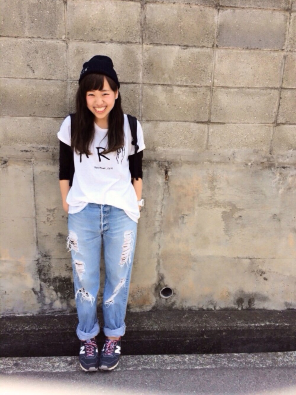 デニム:used シャツ:JEANASiS くつ:ニューバランス