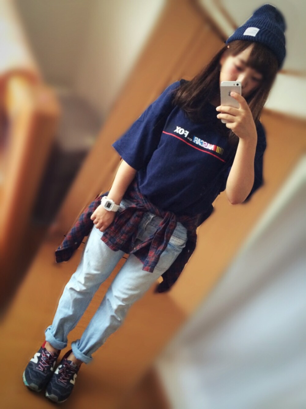 Tシャツ:used デニム:used シャツ:WEGO ニット帽:LAGEBLUE