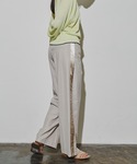 カラーリングが可愛いニットは、袖口のキャンディースリーブが特徴的でタプっとしたシルエットが見る角度で違う印象になります。 デニム合わせも定番で可愛いですし、イージーパンツでラフなスタイリングも普段使いに着やすいです。 パンツは、裾にジップがついているので春先にはサンダル合わせも可愛いです。 パンツ丈は短めなので、小柄な方におすすめです。