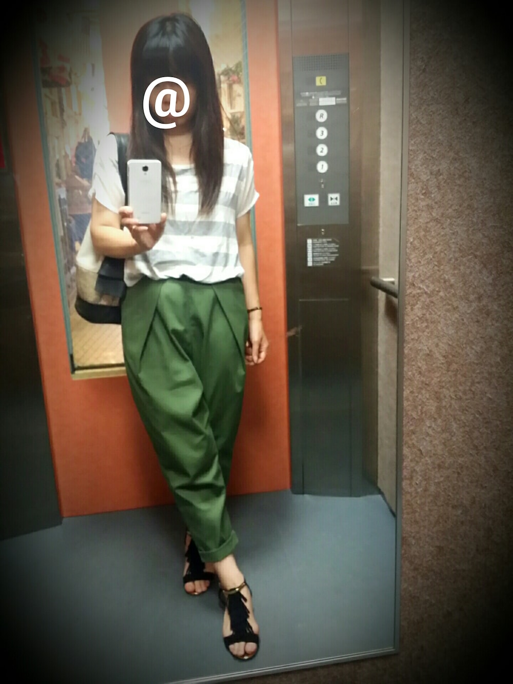 ボーダー×スケスケの異素材トップスも 使いづらい変なタックパンツも リボンの持ち手のバッグも フリンジのサンダルも お気に入り!