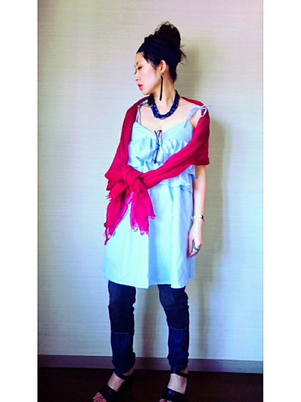 今の時期は、ストールやらスカーフで調節するのがお気に入りで鞄にいつも潜ませております😊☆ 多分私一般の人より薄着な方かも?(笑) 10代は裸族だったのでマシになりました(^q^)(笑) 夜ふらふらせずに早く帰って寝る様になったから私は大丈夫やけど、 夜は急に冷えるし、皆様には今このコーデはあまり参考になりませんね😂💦 このコーデに限った事ではないか…(笑) いつも参考にならなくて本間すみません~🙈💦💦 私なんかのコーデをもし参考にして下さっている方がいらしたら… 是非今度お茶でもしましょう☕(笑) いつも私のお遊びにお付き合い下さる方…本間大好きやん❤(´-ω-`)💐ムフ 暑い中お疲れ様です。