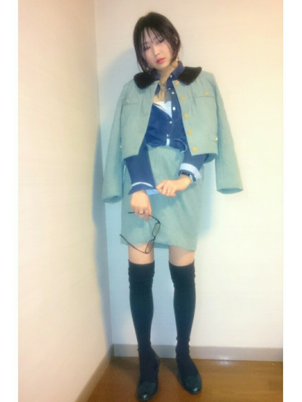 ジャケットとスカートのセットアップコーデ( ^^)🎶 好きなカラー💕 なので靴もグリーンで合わせました( ´∀`)💖 シャツの切り替えしもお気に入りなので片方の袖は折って、 片方はそのままに🌠(´ー`)ノ シャツを結んで涼しげな雰囲気にしたつもりです🌸🌸🌸 春服の爽やかさって好きやから、 春コーデは沢山あげていきたいなぁ💖😌